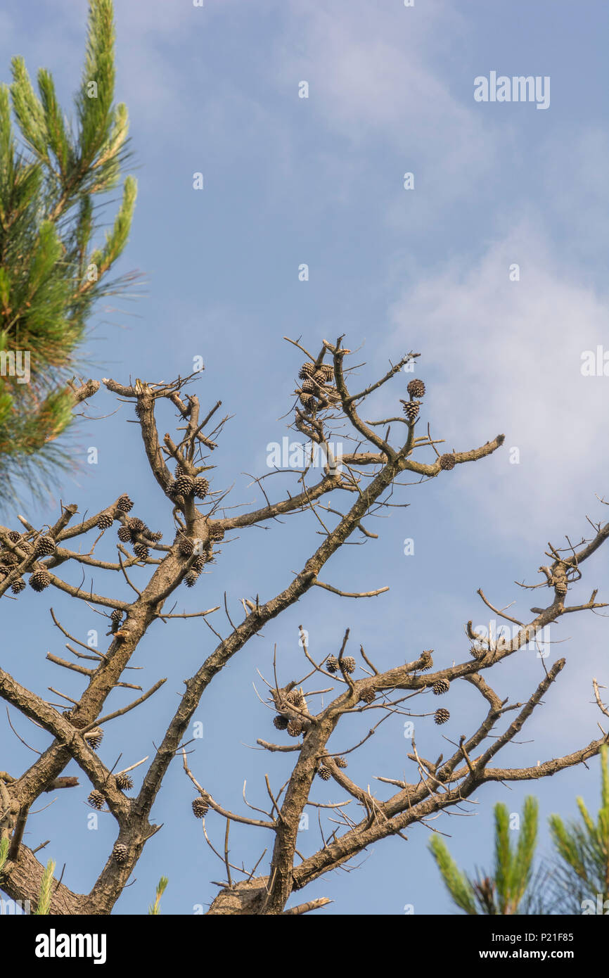 Dead Branches And Pine Cones Of An Old Monterey Pine Pinus Radiata Against Blue Summer Sky In California Where It Is A Native It Is Endangered Stock Photo Alamy
